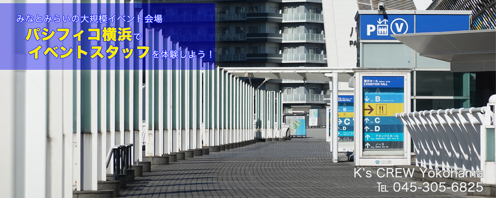 横浜市にあるパシフィコ横浜、横浜アリーナ、Kアリーナ、赤レンガ倉庫、みなとみらいをはじめとする神奈川県全域と東京、千葉、埼玉のイベントスタッフを募集しております。登録制の自由出勤ですので、まずは履歴書不要の登録説明会に参加してみませんか?皆様のご応募をお待ちしております。横浜オフィスでもパシフィコ横浜ノースの事務所でもオンラインでも可能です。